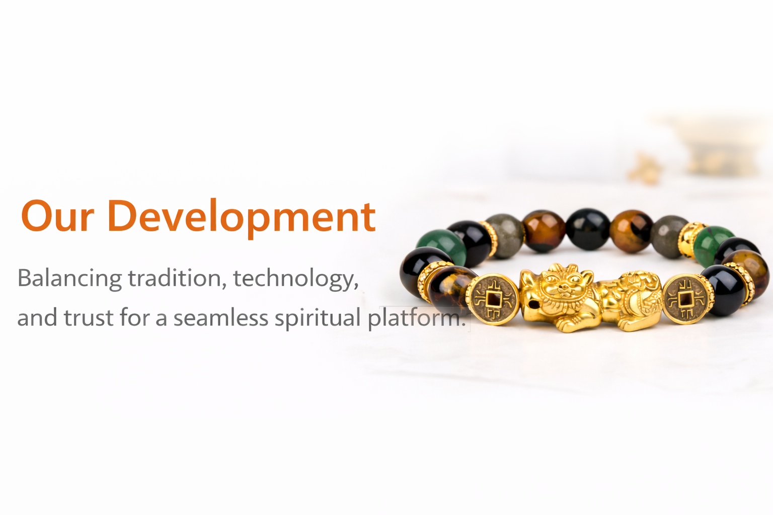 From product sourcing and quality checks to website performance and secure transactions, every aspect of our development focuses on reliability and scalability. We adopt modern digital tools while respecting the spiritual significance of every product we offer.